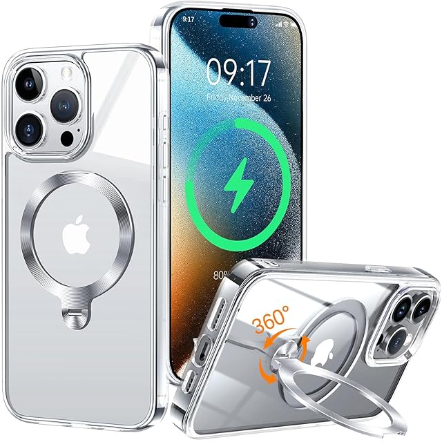 【全身透き通る上質さ!360°回転CD スタンド】ZapNet iPhone 13 Pro Max用 クリア ケース Magsafe 対応 [定点スタンド・超絶安定性][本体を再現・極透明]ストラップホール付き マグセーフ ワイヤレス充電対応 黄変防止 米軍MIL規格取得・耐衝撃 アイホン13プロマックスケース マホケース13 Pro Max 人気 6.7インチ(クリア)