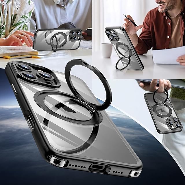 商品名:LUTSIDUTA iPhone 16 Pro 用 ケース ダブルリング付き ショルダー ストラップ付き 多機能360度回転スタンド MagSafe対応 ワイヤレス充電対応 耐衝撃 カメラレンズ保護 三眼 6.3インチ いphone16pro 用 ケース 薄型 透明 PC + 軽量 シリコン TPUバンパー おしゃれ スマホケース (ブラック, iPhone 16 Pro)