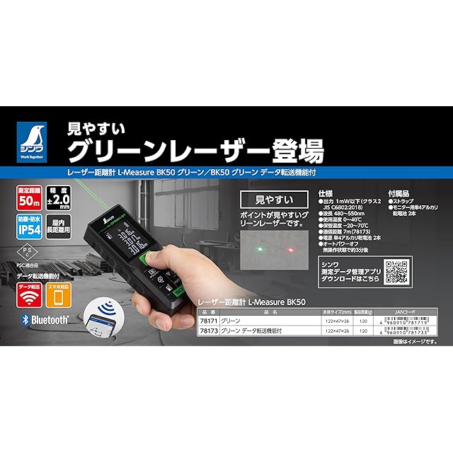 商品名:シンワ測定(Shinwa Sokutei) レーザー距離計 L-MeasureBK50グリーン データ転送機能付 78173