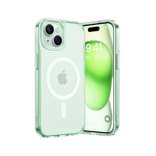 【米軍規格・Magsafe対応】TORRAS iPhone 15 用 ケース 耐衝撃 マグネット搭載 ワイヤレス対応 半透明 マット 黄ばみなし ストラップホール付き アイフォン 15 用 カバー Guardian-Mag 薄緑い