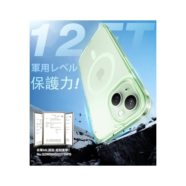 商品名:【米軍規格・Magsafe対応】TORRAS iPhone 15 用 ケース 耐衝撃 マグネット搭載 ワイヤレス対応 半透明 マット 黄ばみなし ストラップホール付き アイフォン 15 用 カバー Guardian-Mag 薄緑い