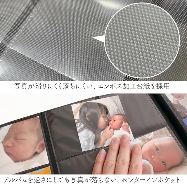 ポリプロピレン製スクエア判3段×3列ポケット3層黒エンボス台紙40枚(80ページ)/スクエア判720枚収納
