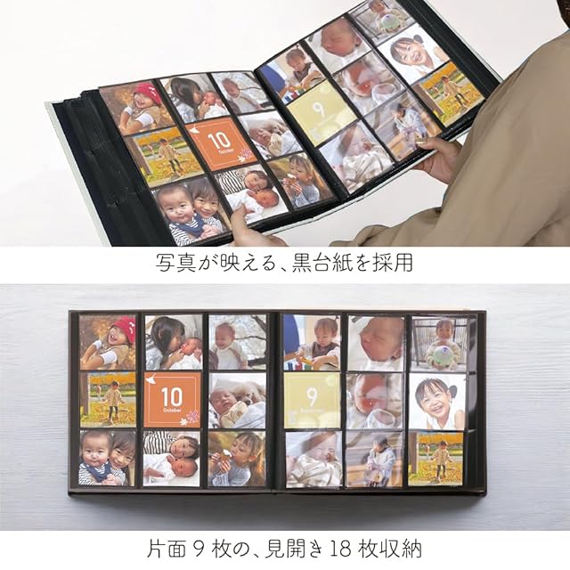 ポリプロピレン製スクエア判3段×3列ポケット3層黒エンボス台紙40枚(80ページ)