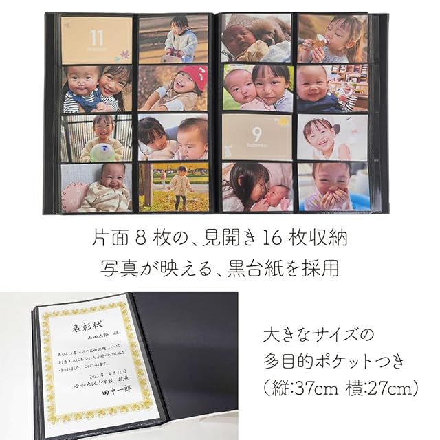 ●ポリプロピレン製L判4段×2列ポケット3層黒エンボス台紙40枚 ●収納枚数:L判640枚収納