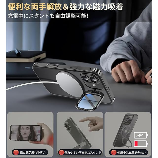 【多機能隠しスタンド&カメラレンズ保護】このiphone 17 ケース には、隠しレカメラマウントとレンズ保護という革新的な二重機能が付属しています。 超軽量のアルミニウム合金製レンズマウントは、30,000回以上の開閉テストを行い、品質と耐久性をしています。 さらに、カメラマウントには9H強化ガラスプロテクターが付属しており、傷やほこり、汚れからしっかりと保護します。 いつでもどこでも0°~180°に調整でき、ゲームやビデオ、FaceTimeを楽しむことができます。