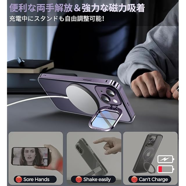 【MagSafe対応&ストラップ穴付き】このアイホン14ケースのCDマグネットリングは高品質のアルミニウム合金製で、リング内部には36+2個のN52スーパーマグネットが内蔵されており、リングを瞬時に装着することでエネルギーロスを最小限に抑えて急速充電が可能で、充電中の熱を放熱してバッテリーを長持ちさせます。このスマホケース iphone14の側面にはストラップホールがあり、ハンドストラップ、リストストラップ、携帯チャームなどのアクセサリーを取り付けることができます。(その他のアクセサリーは付属していません)