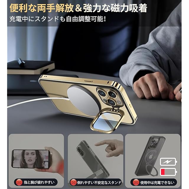 商品名:KELLCASE【カメラレンズ保護・スタンド+覗き見防止+MagSafe対応 】iPhone 14 Pro Max 用 ケース 全面保護 隠しスタンド付き ロック付き 両面 マグネット式 アイフォン14プロマックス カバー ストラップホール付き透明背面 メタルフレーム 磁石 ワイヤレス充電対応 9H強化ガラス 高感度タッチ あいふぉん14 promax 用 ケース 6.7インチ(ゴールド)