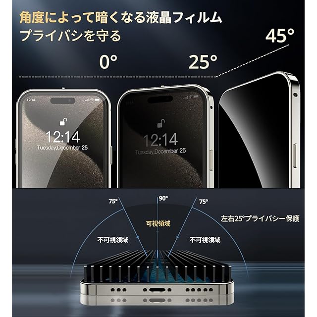 【ロック機能付き&覗き見防止】このいphone 15 pro ケース は上部にセキュリティロックが付いています。 トップボタンロックを軽くスライドさせるだけで、1秒でケースのロックが解除されます! 同時に、このセキュリティメカニカルロックは、ケースの前面と背面をしっかりとロックし、携帯電話を落としても、お客様のiphoneがこのiphone15プロ 両面 ケースから分離することはありません。 iphone 15 pro 覗き見防止ケースには、左右25°の視野範囲をサポートする覗き見防止スクリーンプロテクターが内蔵されています。(視野角が小さいほど、プライバシー保護が強化されます。)お客様の情報、支払いパスワード、プライベートな事柄を覗き見から保護します。