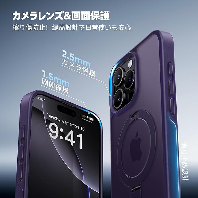 商品名:【8年間の技術結晶!4in1超万能モデル】CASEKOO iPhone 16 Pro Max 用 ケース 米軍MIL規格 横縦両立 指紋防止 マット仕上げ 最大25W急速充電対応 MagSafe対応 黄変防止 半透明 ストラップホール付き ワイヤレス充電対応 いphone16promax 用 ケース 6.9インチ「MagicStand」(ディープパープル)