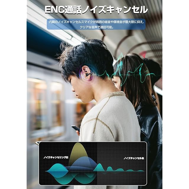 【ENC 通話ノイズキャンセリング&40 時間連続再生対応】このイヤーカフ型イヤホンには、音声入力用のメインマイクに加え、ノイズフィルター機能を備えたセカンダリマイクを内蔵。周囲の騒音を検知して効果的に低減する構造を採用し、通話中は周囲の雑音をしっかり抑え、クリアな音声を相手に確実に伝えます。高速 Type-C 充電技術を搭載し、従来の Micro USB に比べ約 3 倍の充電速度を実現。単体でのフル充電で約 5~6 時間再生可能で、充電ケースと併用することで最大 40 時間の使用が可能です。音楽鑑賞、映画視聴、ゲーム、通話など、多様なシーンでご自由にお楽しみいただけます。