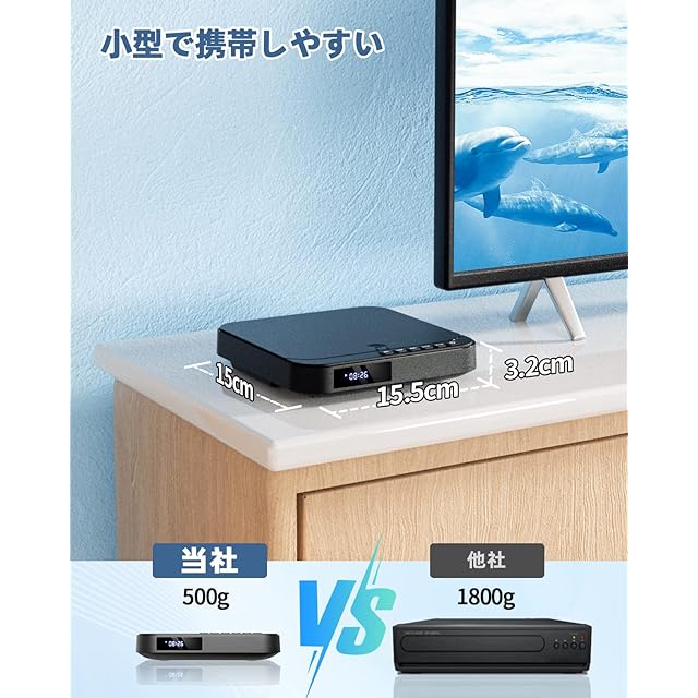 商品名:ミニDVDプレーヤー 1080PサポートFELEMAN DVD/CD再生専用モデル リージョンフリー CPRM対応、録画した番組や地上デジタル放送を再生する、USB/TFカード再生、テレビ/プロジェクター接続可能、Blue-ray非対応、HDMI/AV/イヤホン端子搭載、日本語説明書付き