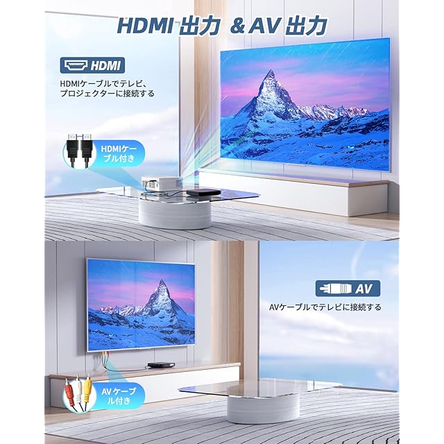 【HDMI出力に対応&1080P高画質】このDVDプレイヤーはHDMI出力に対応しており、テレビに接続することで高画質な映像を楽しむことができます。HDMI対応のハイビジョンテレビに接続することで、お持ちのDVDをより鮮明に、美しい映像で再生することができます。付属のHDMIケーブルにより、プロジェクターにも簡単に接続可能です。HDMIケーブルを使って高画質映像を伝送するだけでなく、AVケーブルを使用してテレビに接続することもできます。