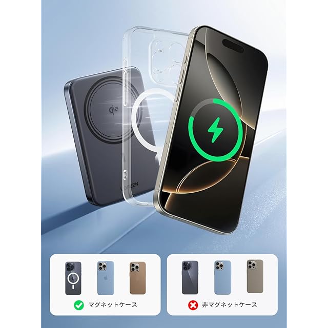 商品名:UGREEN Qi2 MPP 15W Magnetic Wireless モバイルバッテリー Magsafe対応 マグネット式ワイヤレス充電 10000mAh PD 30W 急速充電 USB-C入出力 超強力な吸着力 コンパクト お肌に優しいシリコン素材 放熱性の良いグラフェン材料 PSE技術基準適合 iphone17-12シリーズ ワイヤレス充電対応 マグネット対応機種適用 PB761