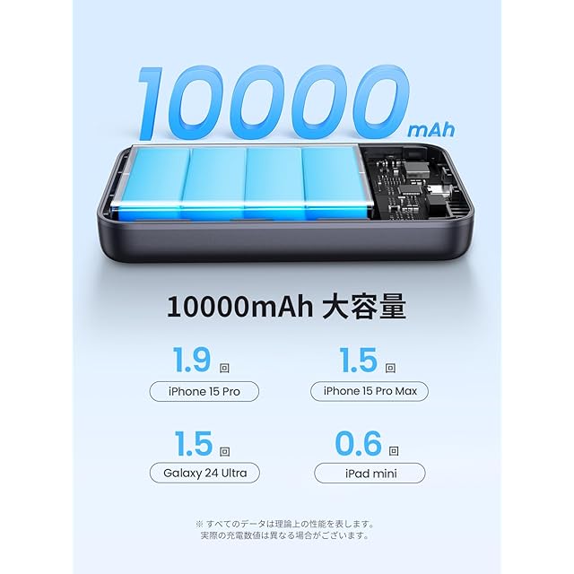 【★ 10000mAh大容量・入出力ともPD 30W急速充電対応 ★】10000mAh大容量により、スマートフォンに約2回充電でき、外出先でスマホやタブレットをよく使う場合に重宝するモバイルバッテリーです。また、USB-Cポートを使用する場合、入出力両方ともPD 30W仕様で、両方とも急速充電可能で、時間を短縮します。