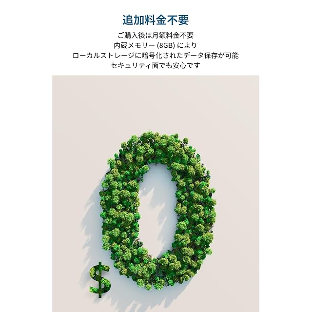 追加料金不要:ご購入後は月額料金不要です。内蔵メモリー (8GB)により、ローカルストレージに直接暗号化されたデータ保存が可能なため、セキュリティ面でも安心です。