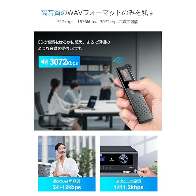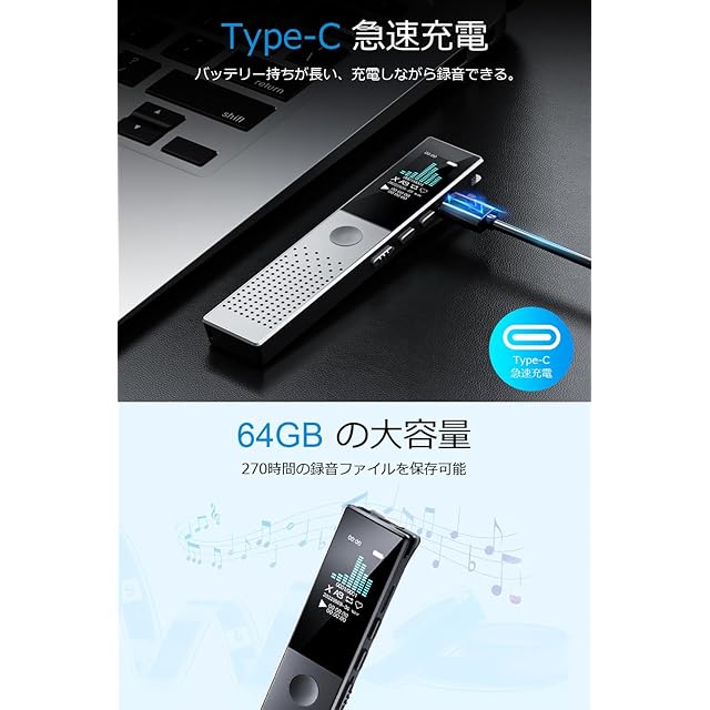 【優れた3072kbps音質&64GBメモリ】最高の品質!3072kbpsの高音質のボイスレコーダーは重要な音声情報を簡単に記録し、作業効率を向上させます。高音質に合わせて、64GBの大容量メモリを搭載しています。会議記録、授業の講義、音楽の録音、どれも現場の音を忠実に再現し、素晴らしい声に仕上げます。高性能な内蔵ストレージを採用し、数時間にわたる連続録音を実現し、ストレージの不足を心配する必要はありません。
