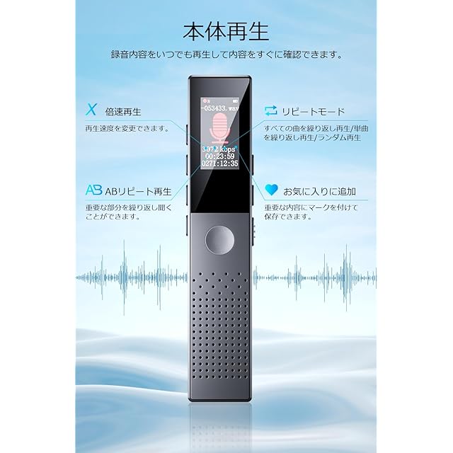 【録音機&再生モード】多彩な再生オプション、このICレコーダーは、ABリピート、全曲リピート、可変再生など多くの再生モードを搭載しています。ABリピートを使用すれば、特定のセクションを繰り返し再生でき、プログレスバーを戻す必要がありません。そして、可変再生機能を使用すれば、再生速度を調整して、異なる学習やリスニングのニーズに対応できます。録音コンテンツをより効果的に制御し、学習や仕事の効率を向上させましょう!