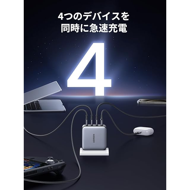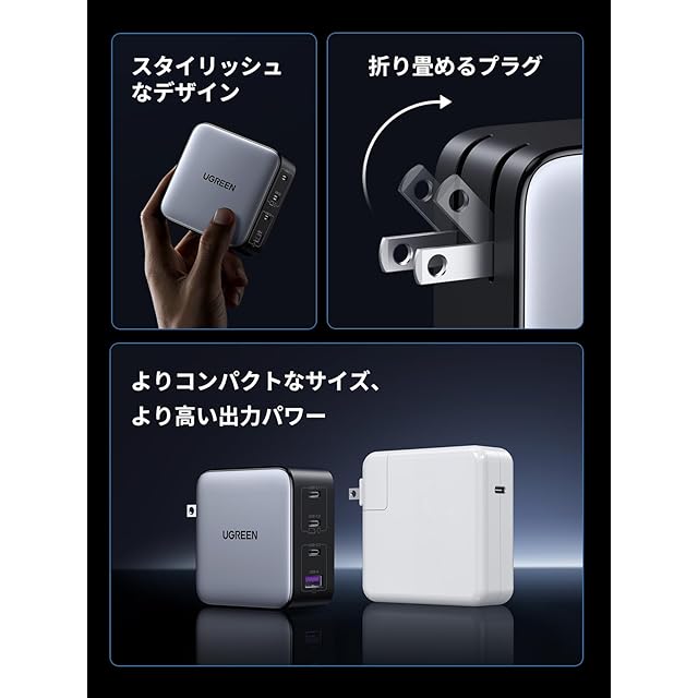 商品名:UGREEN Nexode 100W 充電器 急速 Type-C 4ポート【USB-C*3とUSB-A*1】PD3.0 PPS GaNII 折り畳み式iphone17/16/15/14/MacBook/Dell/iPad/Android対応 PSE適合 CD226