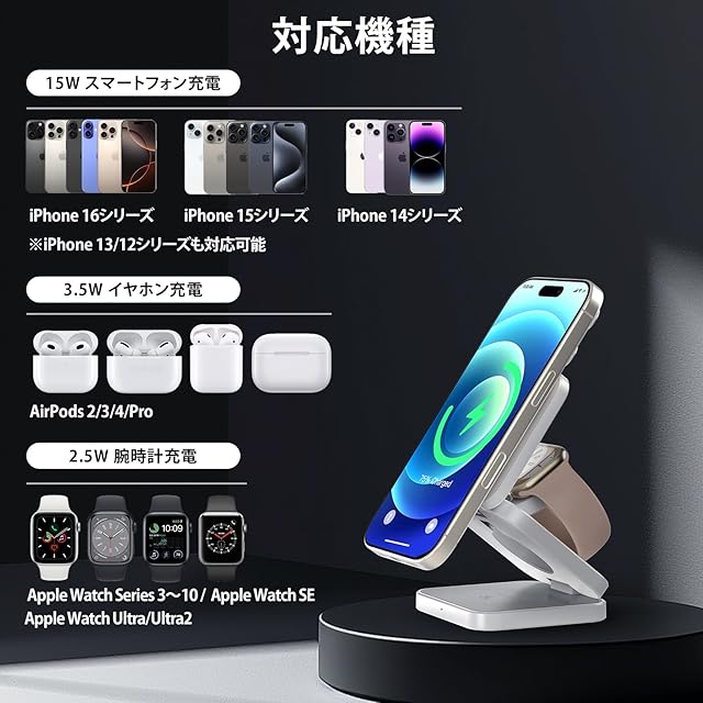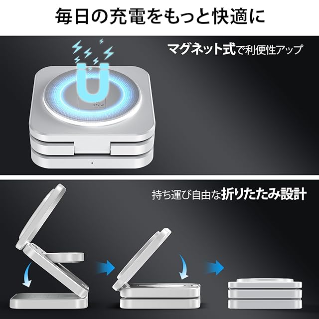 商品名:Yamisan ワイヤレス充電器 3-in-1 マグネット式 折り畳み式 Qi対応 軽量 持ち運び便利 Mag-Safe対応 コンパクト充電器 テレワーク用品/出張/旅行用