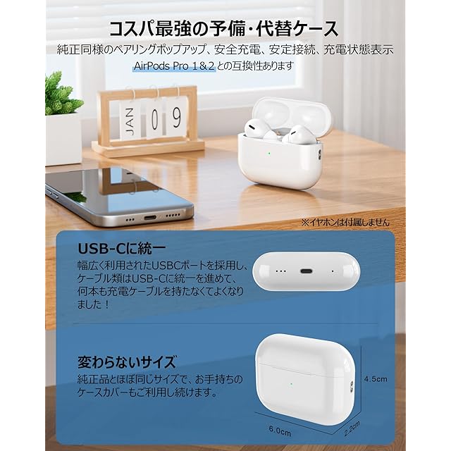 商品名:Mounno USB-C充電ケース、Airpods Pro1&2との互換性あり、タイプC Airpods Pro 第1世代&第2世代 交換用充電ケース、type-cエアーポッズ プロ 1&2 用充電器 ペアリング機能 イヤフォンなし