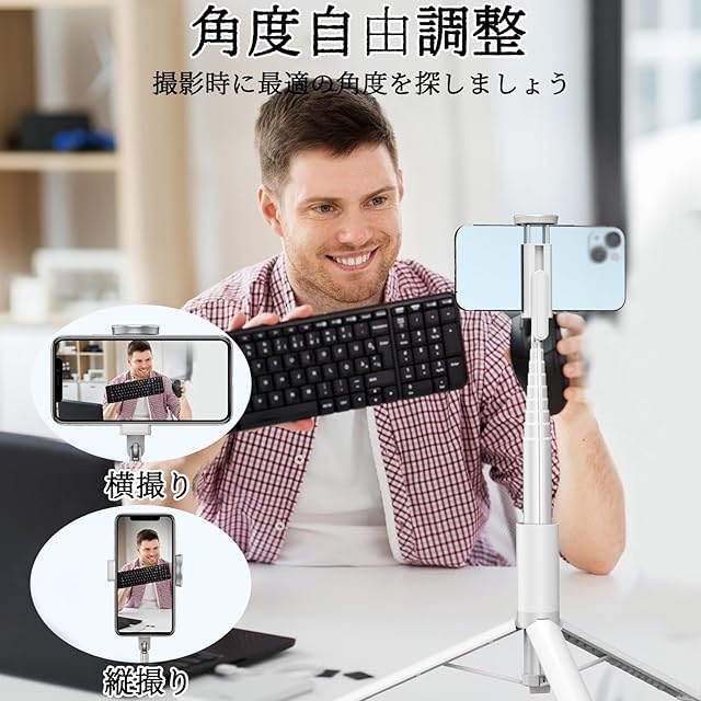 TONEOF スマホ 三脚 170cm 自撮り棒 セルカ棒 じどりぼう 遠隔リモコン 携帯 三脚 150cm以上 収納一体型 コンパクト 軽量 安定 ロング iPhone&Androidに対応 (白)