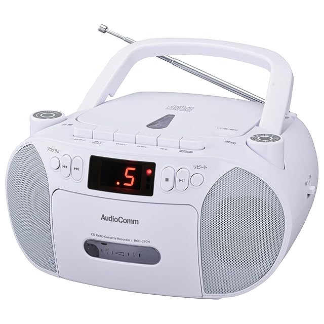 商品名:オーム電機AudioComm CDラジカセ ポータブル コンセント 乾電池 ラジオ カセットデッキ カセットテープ録音再生 ホワイト RCD-320N-W 03-5561 OHM
