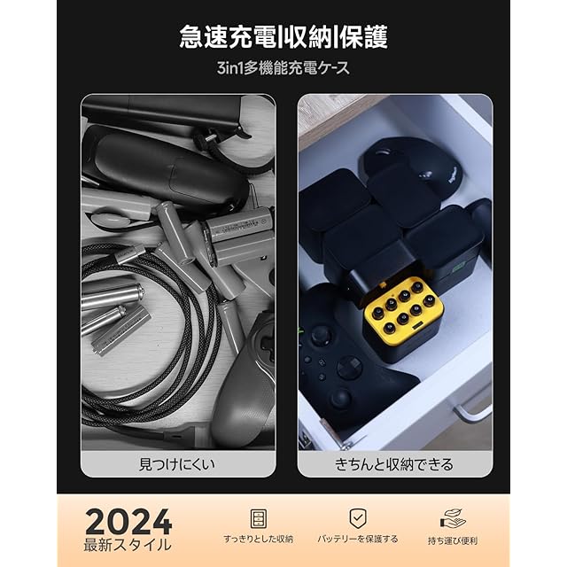 「充電&収納の一体化」imutoの最新バッテリー充電ケースは、急速充電ができ、1~8本のバッテリーの充電ニーズにも対応しています。充電スロットごとに独立して動作するため、1つでも充電が可能であり、他のチャンネルに影響を与えない充電に対応できます。また、この充電ケースは、従来の電池充電器とは異なり、電池を露出させて損傷や汚れを与えず、電池の効能や使用に影響を与えることができる。また、充電ケースにはLEDインジケータがあり、LEDインジケータを通じて電池が充電されているかどうか、電池が何本充電されているかということが一目瞭然です。imutoの最新バッテリー充電ケースは充電せずにバッテリーを収納することができ、紛失しにくいです。