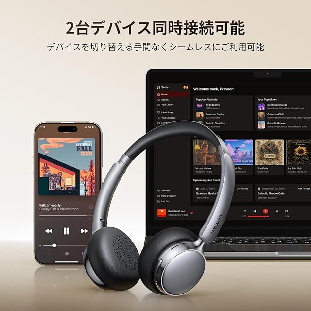 【30mm振動板ユニット搭載】UGREENワイヤレス ヘッドホンは30mmドライバーを搭載し、高域は透徹感があり、中域は明瞭で、低域は深みと正確さを備え、ダイナミックな応答速度を持つ。ライブ会場のような臨場感や身体に響きわたるような迫力に加え、クリアなボーカルや高音までバランス良く楽しめます。ありとあらゆる音質体験に完璧に対応できます。