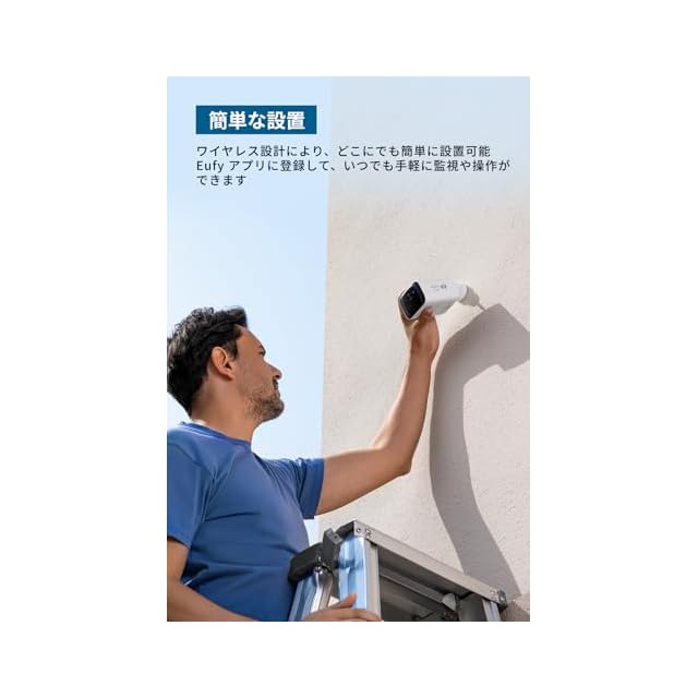 簡単な設置:ワイヤレス設計により、どこにでも簡単に設置可能。また、Eufy アプリに登録して、いつでも手軽に監視や操作ができます。