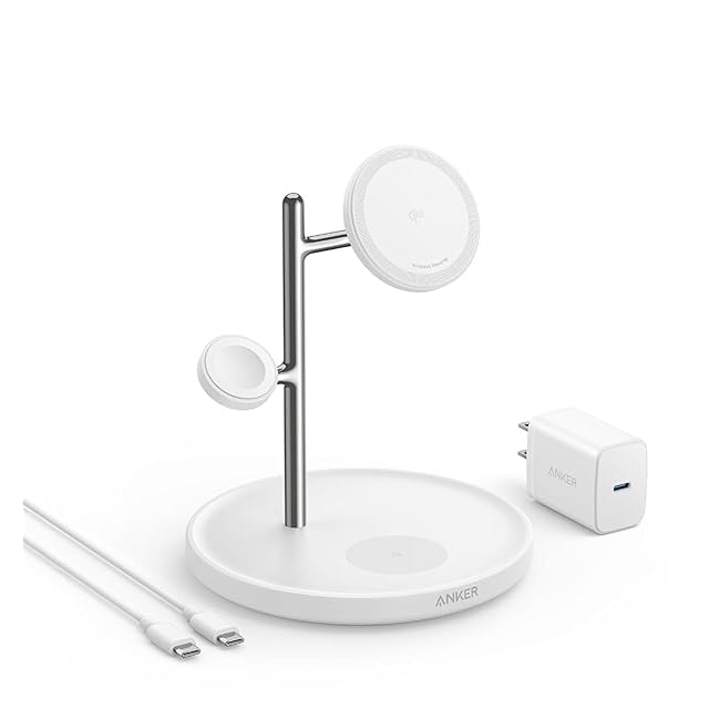 Anker MagGo Wireless Charging Station (3-in-1 Stand) Qi2対応 マグネット式 3-in-1 ワイヤレス充電ステーション/ワイヤレス出力/Apple Watchホルダー付 MagSafe対応 iPhone 17 / 17 Pro / 17 Pro Max / 16 / 15 / 14 / 13 ホワイト