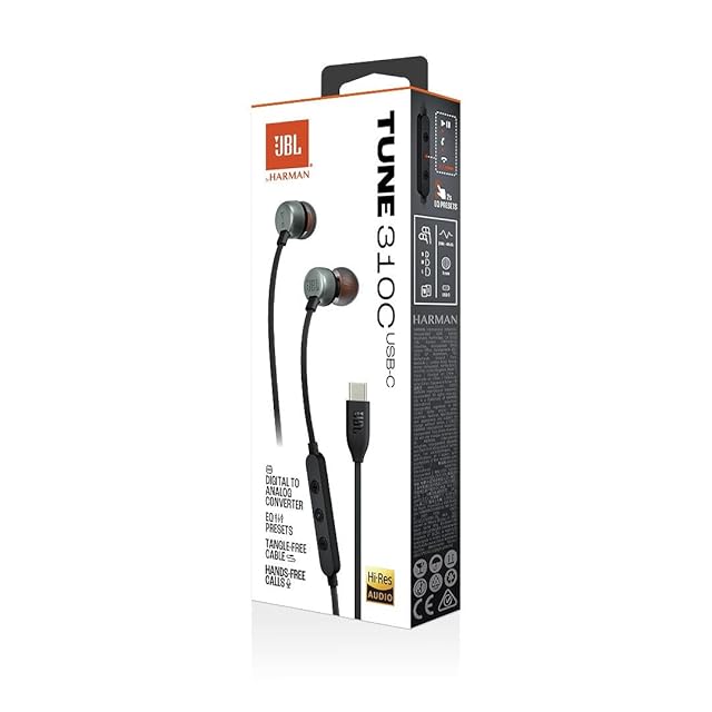 商品名:JBL TUNE310C USB Type-C 接続 イヤホン 96kHz/24bit DAC内蔵/通話可能マイク付き3ボタンリモコン/フラットケーブル/3種のプリセットイコライザー搭載/ハイレゾ/9mm径ダイナミックドライバー/ブラック/JBLT310CBLK