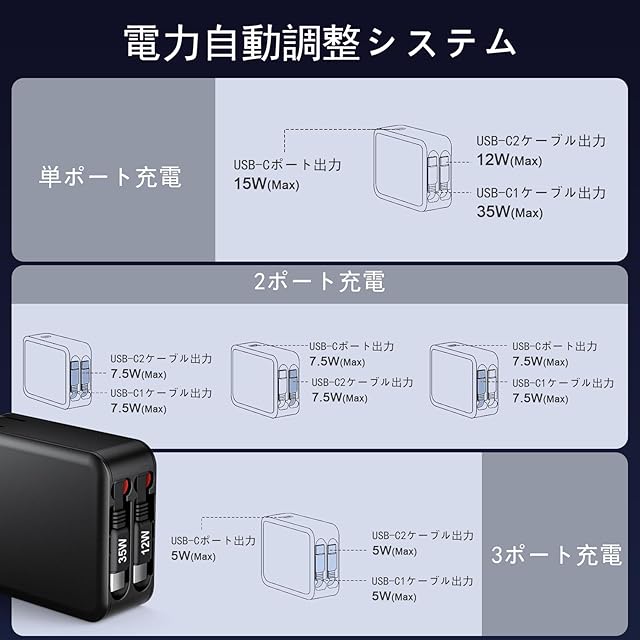 商品名:充電器 type-c 35W 急速充電器【自動巻き取り式 2本type-c充電ケーブル付き】 PD対応 2本USB-Cケーブル & USB-C ポート 三台同時充電 タイプcケーブルー体型 折りたたみ式プラグ iPhone 16 / 15/ 14/ 13/ 12/ 11/ X/XS/XR/ 8/ 7/ SE/iPad Pro/AirPods/Androidなどに対応 ブラック