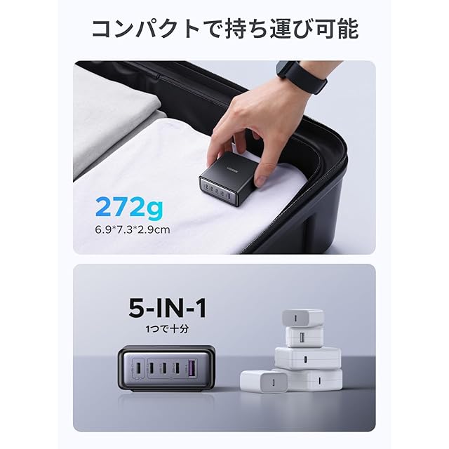 ▶ 【5台同時充電・複数の充電規格に対応】USB-C×4 USB-A×1で、5台のデバイスを同時に充電られる。Power delivery3.0に対応だけでなく、QC4+(QC4.0/QC3.0)、PPS、SCP、FCP、AFCなど、あらゆる急速充電規格に対応し、スマホからノートPCまで幅広く適用に実現した卓上急速充電器!