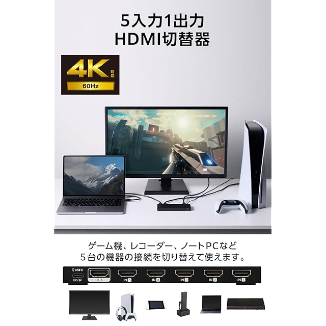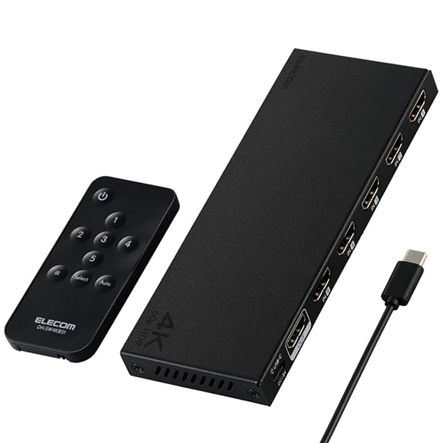 商品名:エレコム HDMI 切替器 4K 60Hz 5入力1出力 リモコン付き 【自動・手動切替が選べる】 PS5・4 / Nintendo Switch/Fire TV Stick 他 DH-SW4KB51BK/E
