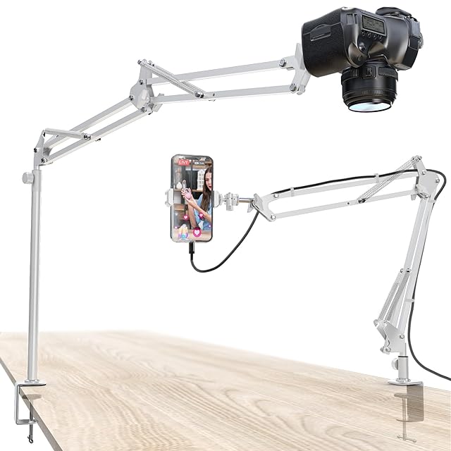 CACENCAN M03 カメラアーム カメラスタンド アーム 俯瞰撮影 スマホスタンド 手元撮影 ウェブカメラスタンド 360度回転 延長アーム 卓上デスク クランプ式 1/4ネジ・スマホホルダー付き 自由雲台 高くなる改良型 料理/絵画/手芸/授業/美容化粧/LIVE生放送/物撮り/web会議 YouTube Tiktok 動画撮影に適用 白色