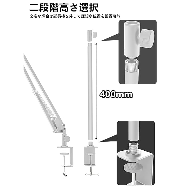 カメラアーム カメラスタンド アーム 俯瞰撮影 スマホスタンド 手元撮影 webカメラアーム 360度回転 延長アーム 卓上デスク クランプ式 1/4ネジ・スマホホルダー付き 自由雲台 ウェブカメラスタンド 高くなる改良型 料理/絵画/手芸/授業/美容化粧/LIVE生放送/物撮り/web会議 YouTube Tiktok 動画撮影に適用 白色<br> スマホ対応機種:4.7~7インチ(幅60~90mm、厚み9mm) iPhone 16/ 16Pro/ 16Plus/ 16Pro Max/ 16e/15/ 15Pro/ 15Pro Max/ 15Plus/ 14/ 14Pro/14 Pro Max/14 plus/ 13/ 13Pro/ 13Pro Max/ 13mini/ 12/ 12 Pro/ 11/ 11 Pro/ 11 Pro Max/ 8/ 8Pro/ 7/ iPhoneX/ XS/ Samsung Galaxy S25/ S24/ S23/ S22シリーズ/ Google Pixelシリーズ/ Huawei/ Xiaomi…に対応。 カメラ対応機種:(※カメラによっては使用条件がございますので、詳しくはメーカーページでご確認下さい。) Canon:EOS Kiss X3,EOS Kiss X4,EOS Kiss X5,EOS Kiss X7,EOS Kiss X7i,EOS Kiss X80,EOS Kiss X8i,EOS Kiss X9,EOS Kiss X90,EOS Kiss X9i,EOS Kiss X10,EOS Kiss X10i,PowerShot SX70 HS,PowerShot SX420 IS,EOS 30D,EOS 50D,EOS 5Ds,EOS 5D Mark IV,EOS 5D Mark III,EOS 6D,EOS 6D Mark II,EOS 7D,EOS 70D,EOS 7D Mark II,EOS 80D,KISSDXB-BODY,EOS 9000D,EOS R6 Mark IIなどに対応。 Nikon:D3,D5,D6,D40,D70S,D300S,D500,D780,D810,D850,D3100,D3200,D3400,D5000,D5100,D5200,D5300,D5600,D7000,D90,D5500,D7100,D7500,COOLPIX P7000,FM10,Z fcなどに対応。 ソニー:α1,α9 II,α7R V,α7R IV(ILCE-7RM4A),α7S III,α7R III(ILCE-7RM3A),α7 IV,α7 III,α7C,VLOGCAM ZV-E1,α6600,α6400,α99,α200,VLOGCAM ZV-E10,ILCE-6500などに対応。 PENTAX:K-1 Mark II ,K-30,K-3 Mark III,K-5IIs,K-70,KP BODY BLACK 16020などに対応。 OLYMPUS:E-410,SZ-10,PEN E-PL10,STYLUS SP-820UZなどに対応。