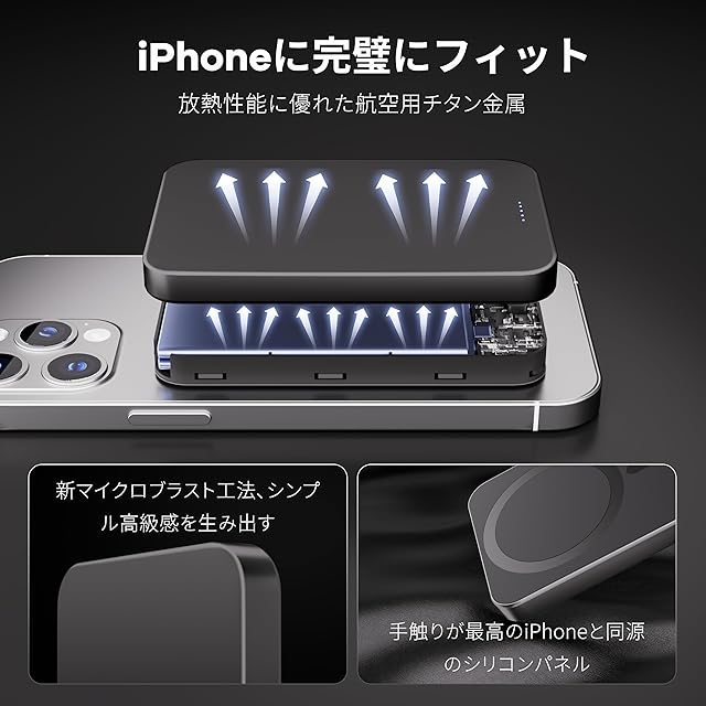 商品名:【業界初のチタン金属・0.8cmの超薄型】Yamisan モバイルバッテリー Magsafe対応 小型 軽量 PD20W急速充電 マグネット式 ワイヤレス充電器 スマホ充電器 両台同時充電 Type-C入出力兼用 5000mAh マグセーフ充電器 iPhone air/17/16/15/14/13/12シリーズ対応 コンパクトで機内持ち込み可 旅行/出張/災害用 PSE認証済み(チタン灰色)