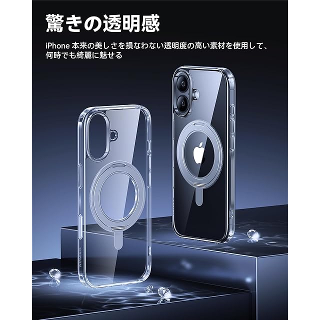 商品名:NIMASO iPhone 17 用 ケース 縦横両対応 360°回転スタンド いphone 17 対応 カバー MagSafe対応 携帯スマホケース リング付き 耐圧設計 マグネット搭載 カメラコントロールボタン付き 米軍MIL規格 耐衝撃 傷防止 指紋防止 黄变防止 クリアケース (氷星シリーズ)NSC25F1681