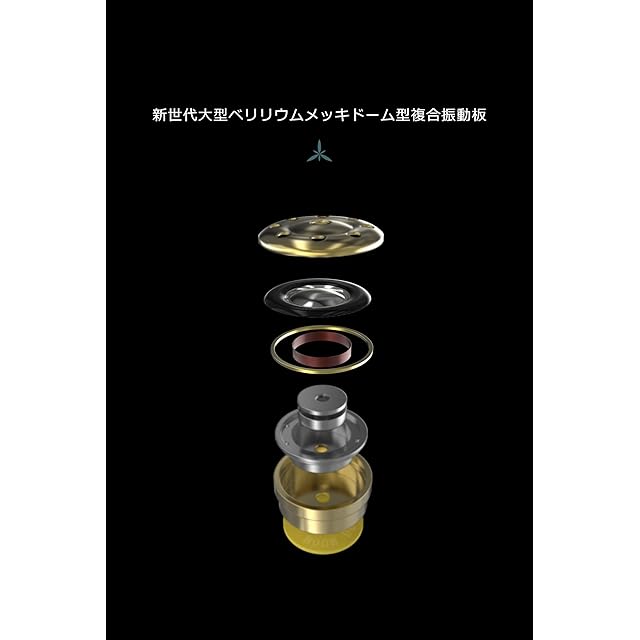 【高再現度&超低歪みカナル型Hi-Fiイヤホン】新世代大型ベリリウムメッキドーム型複合振動板は、より高い周波数帯域をカバーする低分割振動を持ち、柔性エッジのよりリニアなロングストローク歪と相まって、低非線形歪と広い周波数帯域の物理基盤を構成しています。