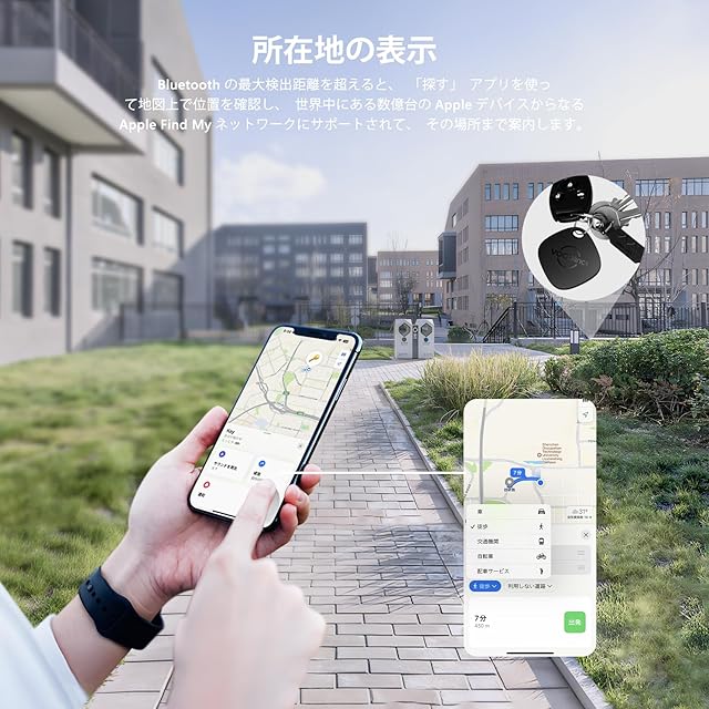 【近くを探す & Appleネットワーク追跡】:最大200 フィート/60 m の Bluetooth 範囲 (80 dB の呼び出し音)、超長距離追跡。 「探す」アプリまたは Siri を使用して、トラッカーが範囲内にあるときに着信音を鳴らすことができます。 また、トラッカーが範囲外にある場合でも、Apple ネットワーク上の何億もの Apple デバイスでトラッカーを見つけることができます。
