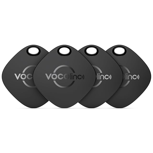 VOCOlinc エアタグ 紛失防止タグ- (4 個) Appleの「探す」 (iOSのみ対応), スマートタグ 忘れ物防止 タグ 超薄(0.75 cm) Bluetooth トラッカー 探し物(鍵、荷物用)電池交換可能 軽量 黒