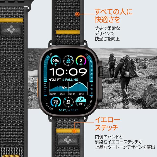 Spigen Apple Watch バンド 49/46/45/44mm【簡単でしっかり装着】Apple Watch Ultra3/Ultra2/Ultra/11/10/9/8/7/6/5/4/SE3/SE2/SE 対応 ストラップ ファブリック素材 通気性 アスレックス・エア AMP09033(アクティブ・ブラック)
