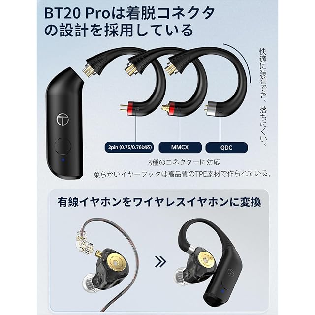 商品名:TRN BT20pro【有線イヤホンの無線化】 AAC/SBC対応 2Pin QDC MMCX Bluetooth ワイヤレス ケーブル リケーブル ハイインピーダンス対応 自動ペアリング 低遅延 マイク付き TELEC認証 (BT20 Pro)