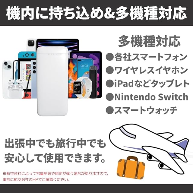 【大容量で長時間使用可能】 このモバイルバッテリーは10000mAhの大容量で、スマートフォンやタブレットを何度も充電できます。