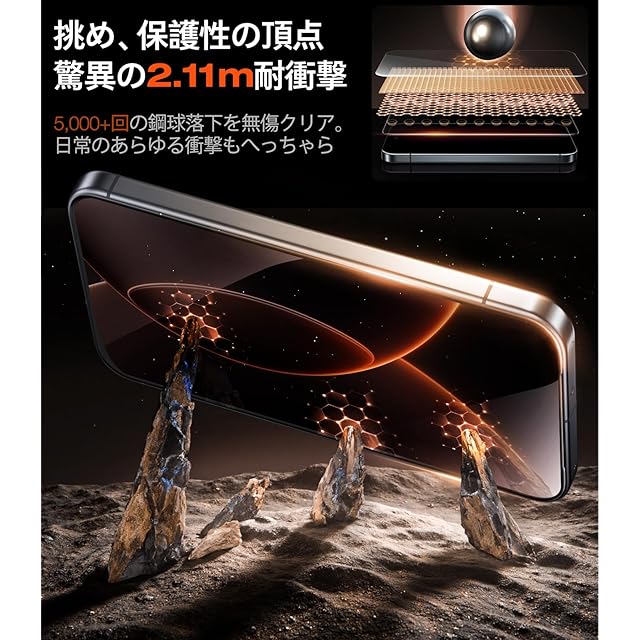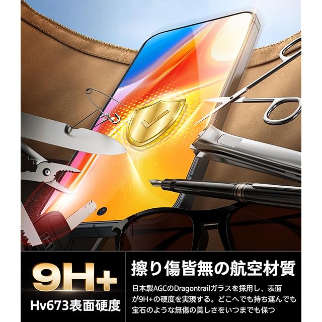 TORRASの Google Pixel 10/10pro 用ガラスフィルムは日本製AGCの航空宇宙技術から生まれた「Dragontrail」ガラスを採用し、表面硬度が9Hを超え、鉱石の硬さを示すビッカーズ硬度Hv673を実現する。