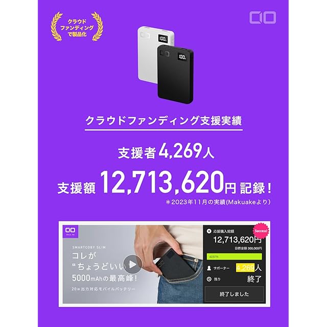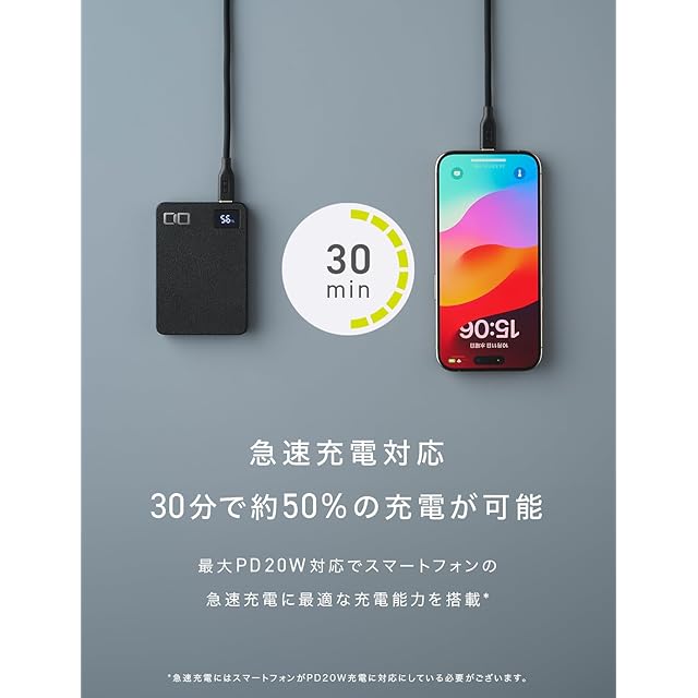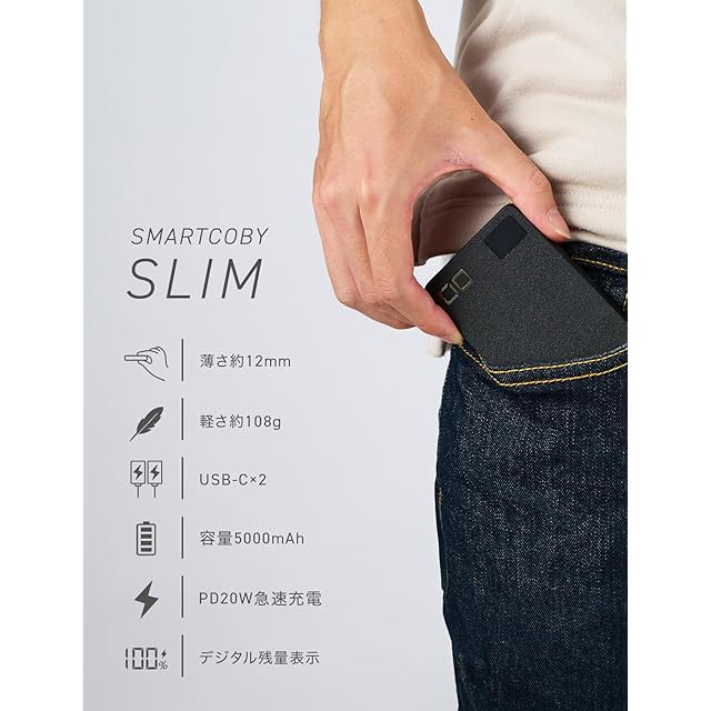 商品名:CIO モバイルバッテリー 薄型 軽量 小型 タイプC PD 20W [薄さ12mm 108g] 5000mAh 2ポート iPhone 17 / 16 / 15 / Android/iPad用 USB-C タイプC 急速充電 パススルー SMARTCOBY SLIM 20W (ブラック)