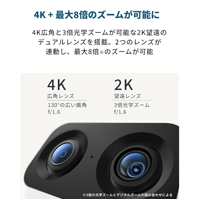 4K + 最大8倍のズームが可能に:4K広角と3倍光学ズームが可能な2K望遠の