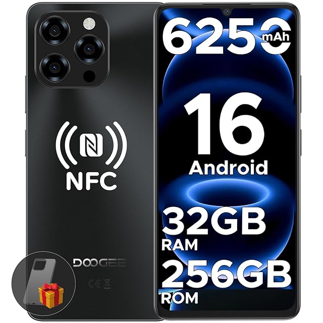 DOOGEE Note58 Pro Android 16 スマホ 90Hz 6.7 インチ HD+大画面 スマートフォン 32GB+256GB 2TB拡張 simフリー スマホ 本体 16MP AIカメラ/6250mAh/顔認証/指紋認証/1600*720 解像度/NFC/GPS/OTG/4G デュアルSIM 携帯電話 ブラック