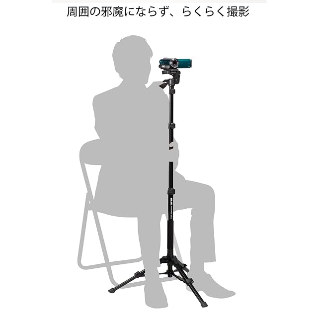 一脚に自立脚を備えることで一脚よりも安定し、三脚より場所を取らない自立式一脚