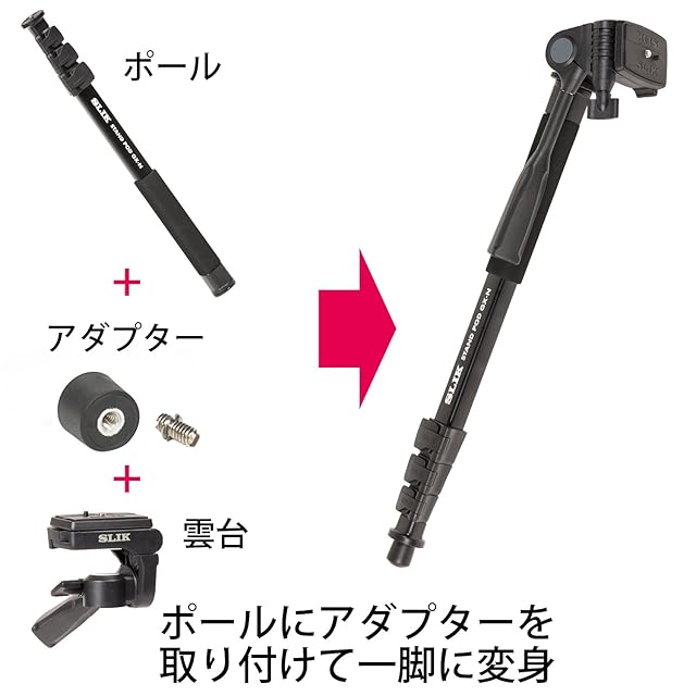 商品名:SLIK 一脚兼簡易三脚 スタンドポッドGX-N 4段レバーロック式 3ウェイ雲台 クイックシュー式 217122 ブラック